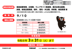 詳しくはこちら【補助金】更新:くまもと型応援補助金のご案内(3/31受付締切)
